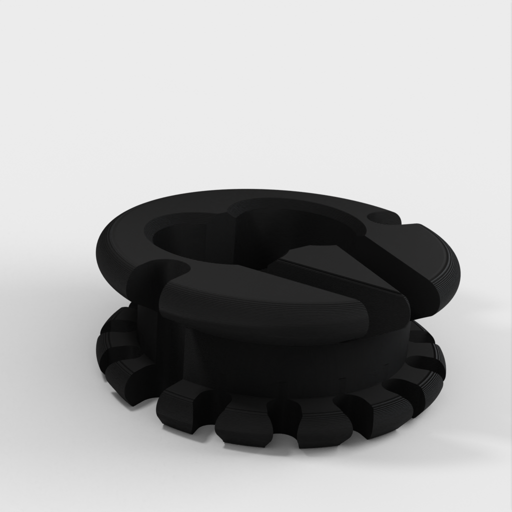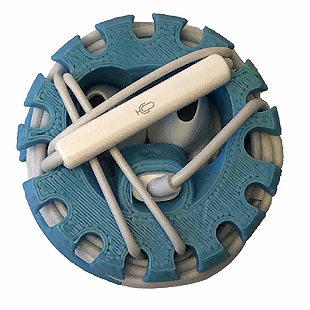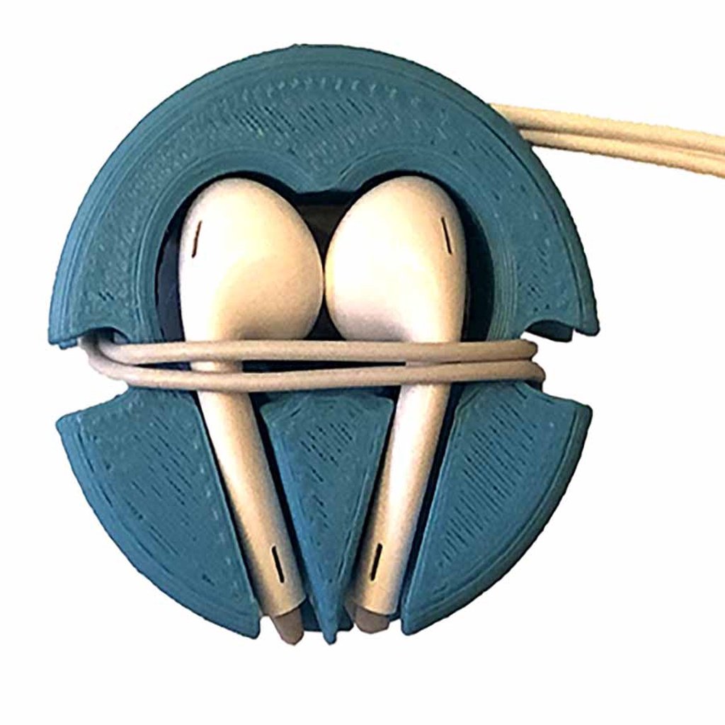 Yleiskorvakuulokepidike, joka pitää korvakuulokekaapelit siisteinä ja mutkattomina. Se on suunniteltu sopimaan kaikenkokoisille ja -tyylisille korvanappikuulokkeille, mukaan lukien mikrofoneilla varustetut, kuten iPhonessa käytettävät, joko pistotulppa- tai salamaliitännällä varustetut kuulokkeet.