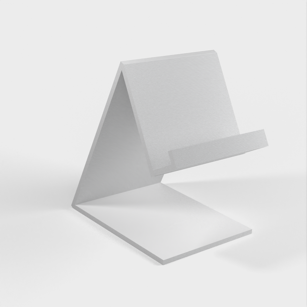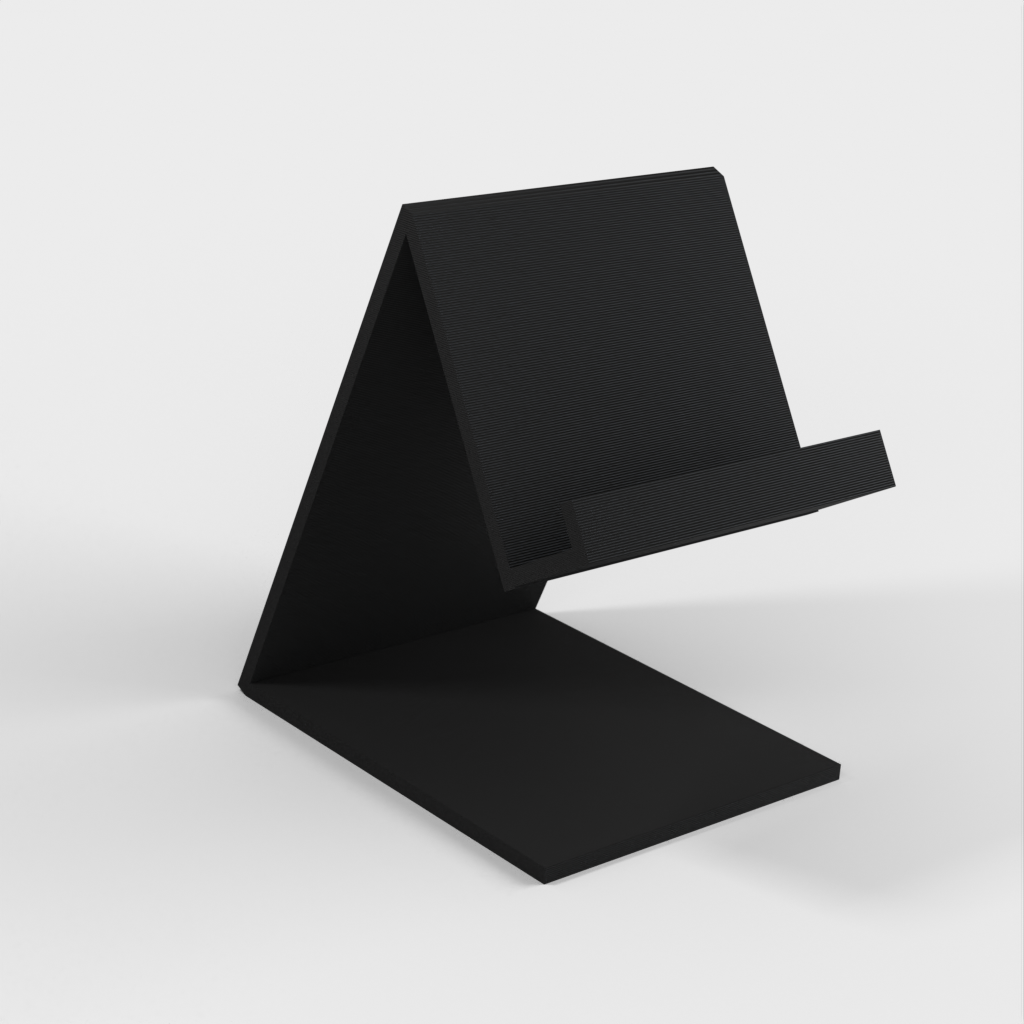 A openscadilla tehty universaali matkapuhelinjalusta. Jalusta on suunniteltu sopimaan erityyppisiin matkapuhelimiin, ja sen avulla voit helposti sijoittaa ja käyttää puhelintasi kiinteällä alustalla.