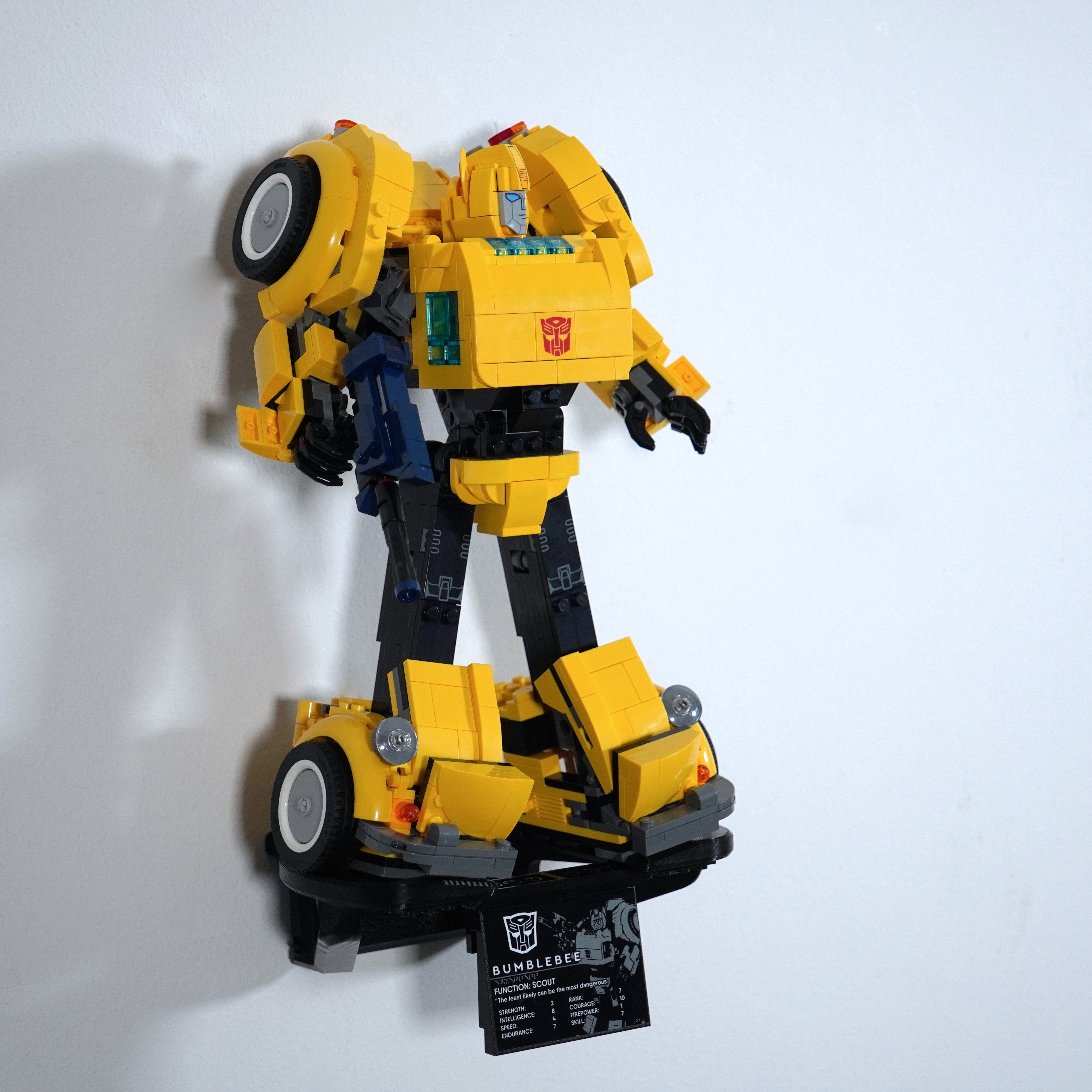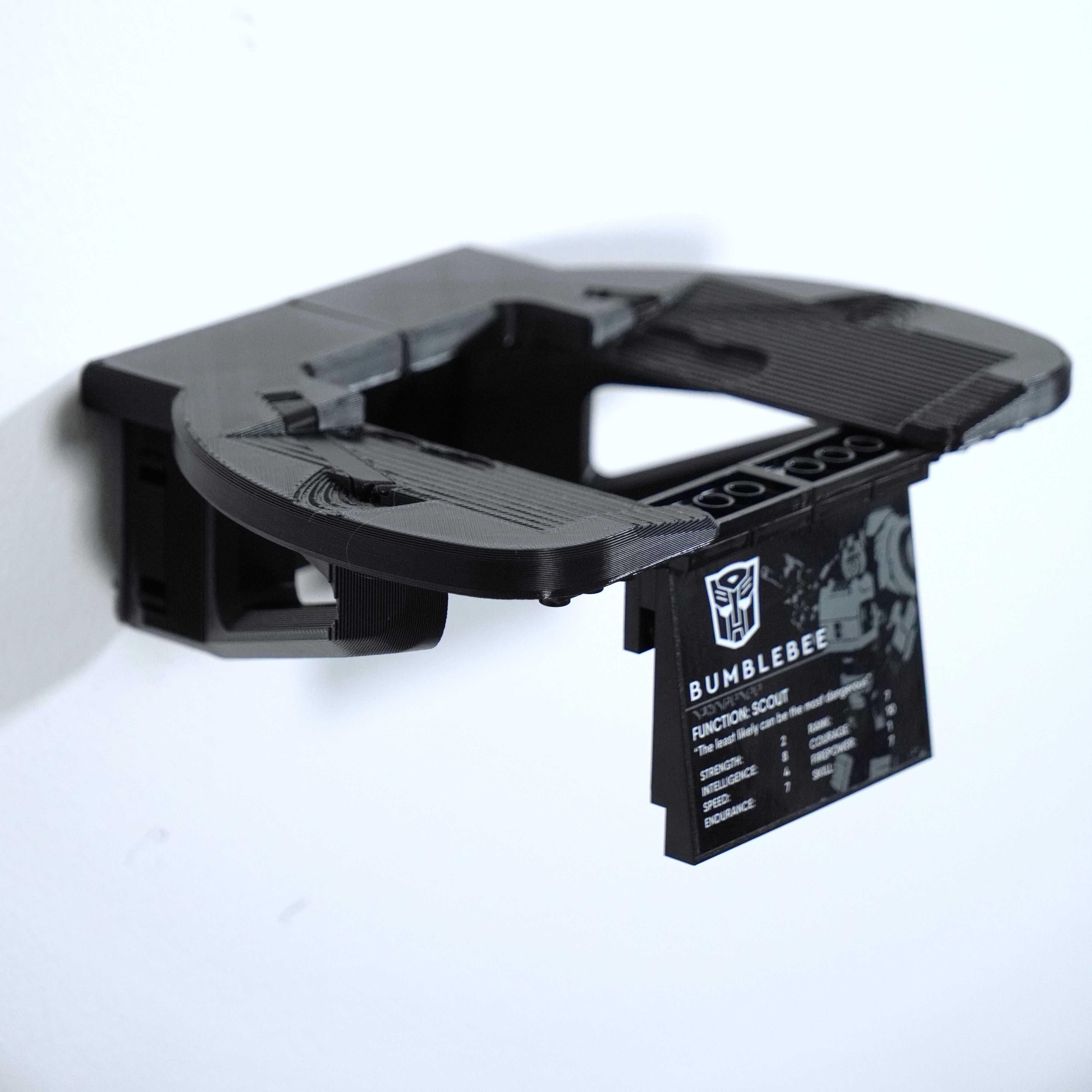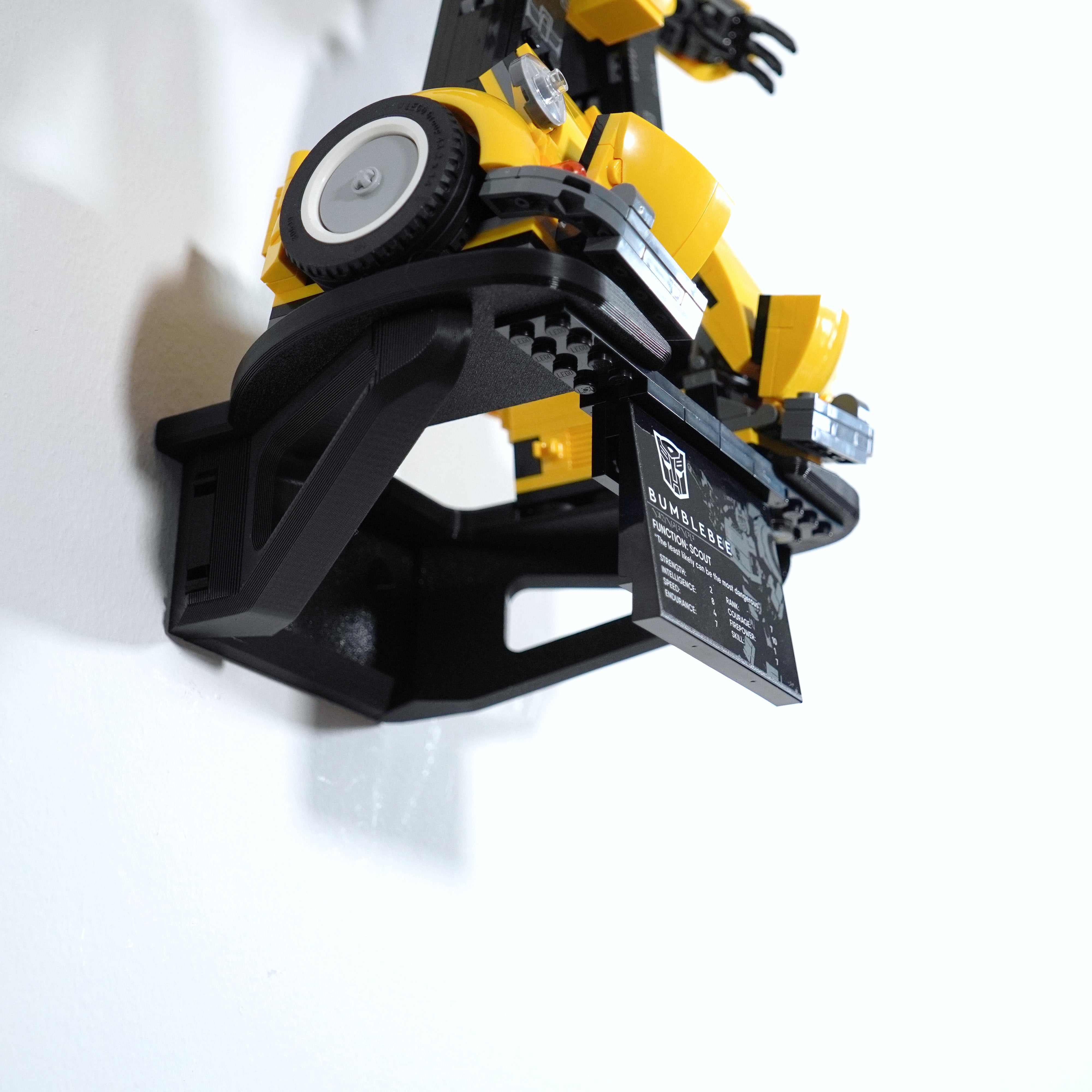 Dette vægbeslag er designet specifikt til Transformers Bumblebee 10338 og gør det muligt at udstille modellen sikkert. Sættet kan nemt tages ned fra væggen ved behov. Beslaget inkluderer desuden en holder til det tilhørende infoskilt og monteres med to skruer på 4-5 mm.