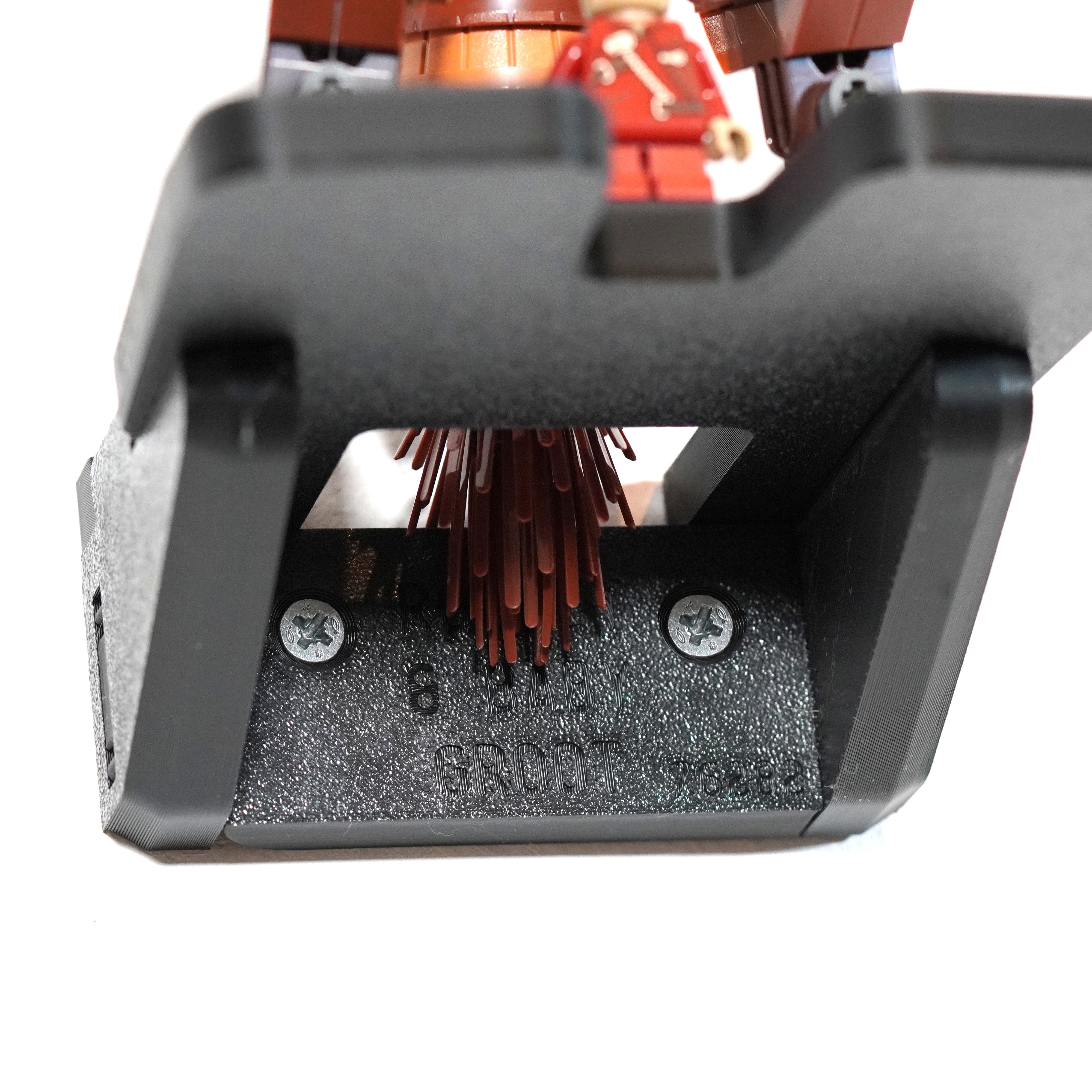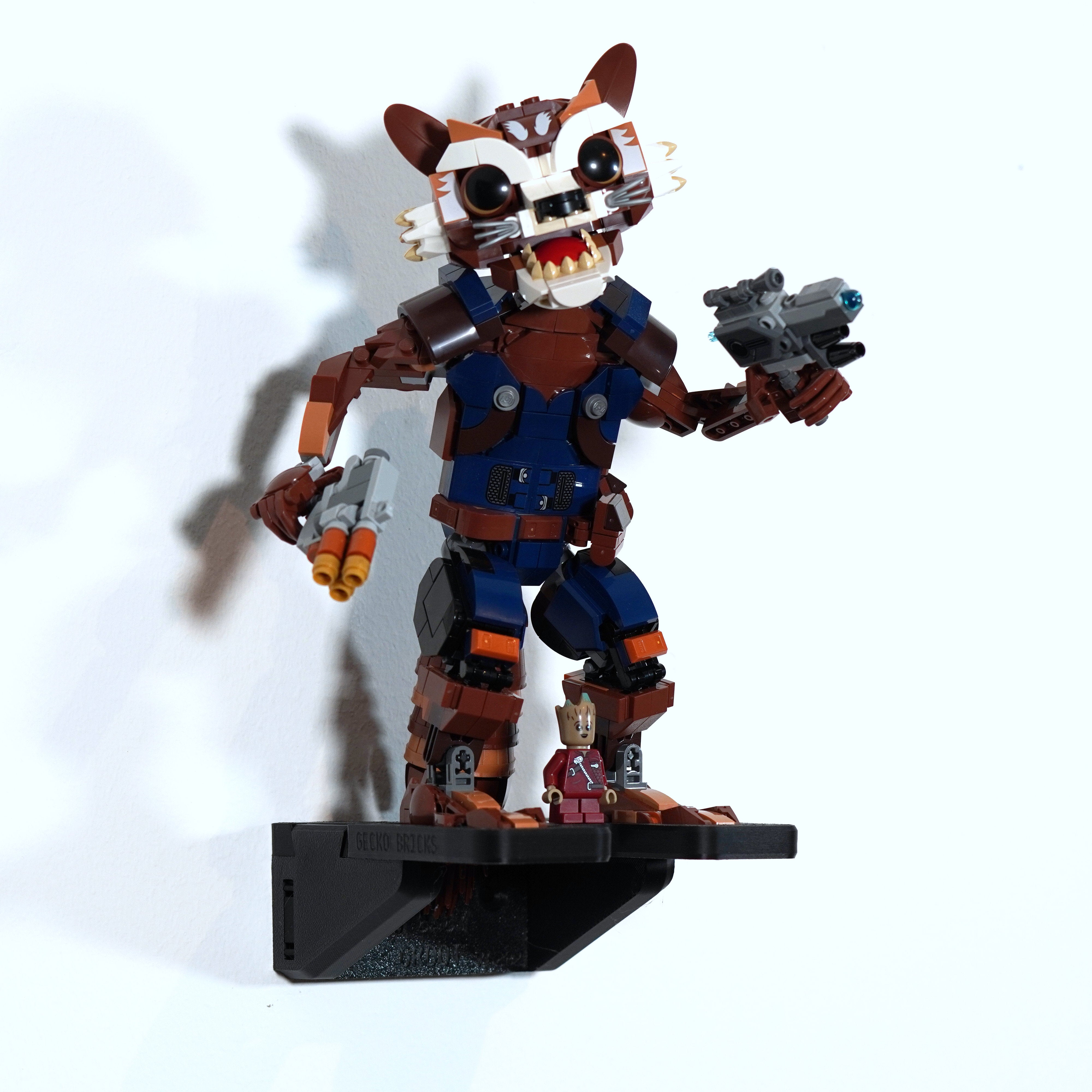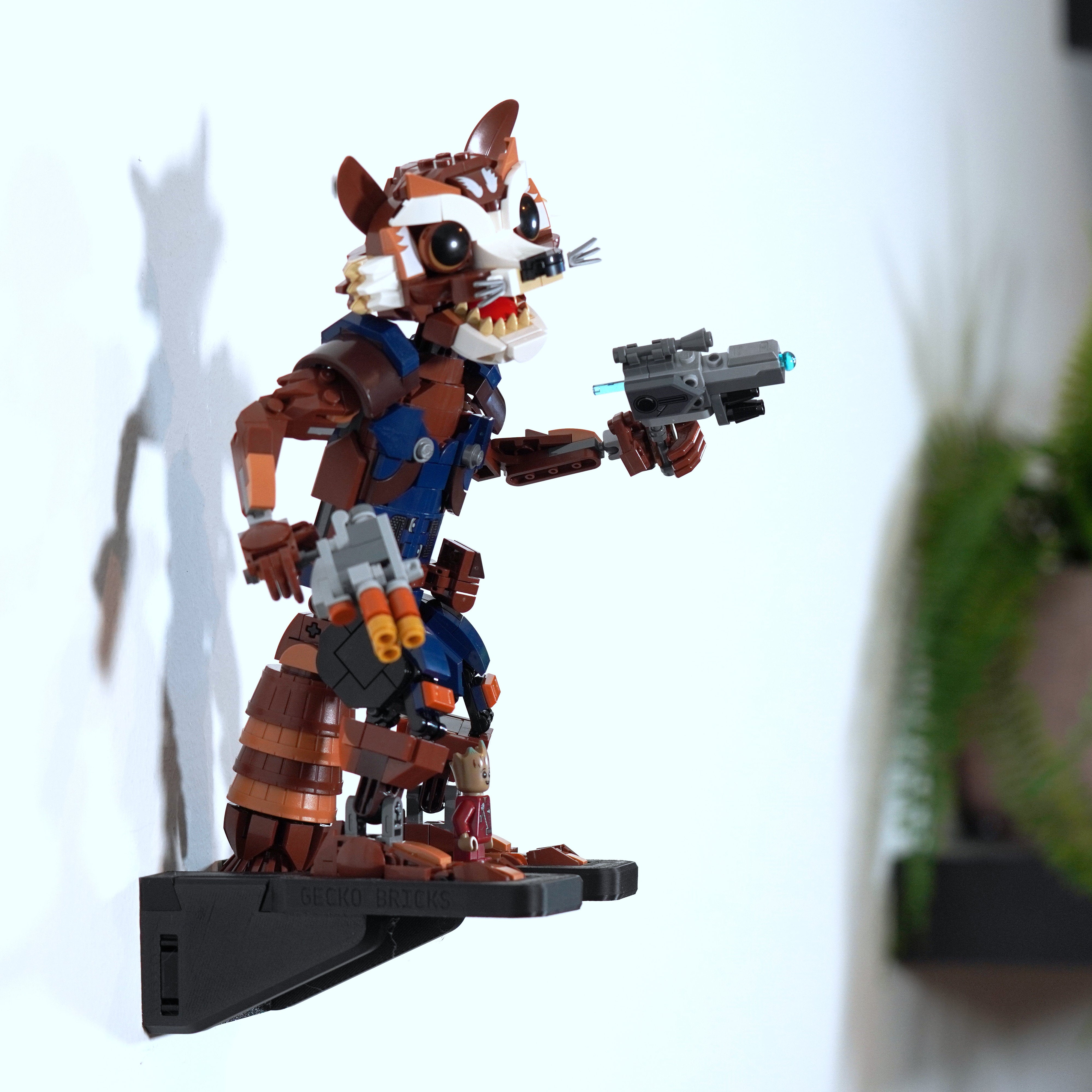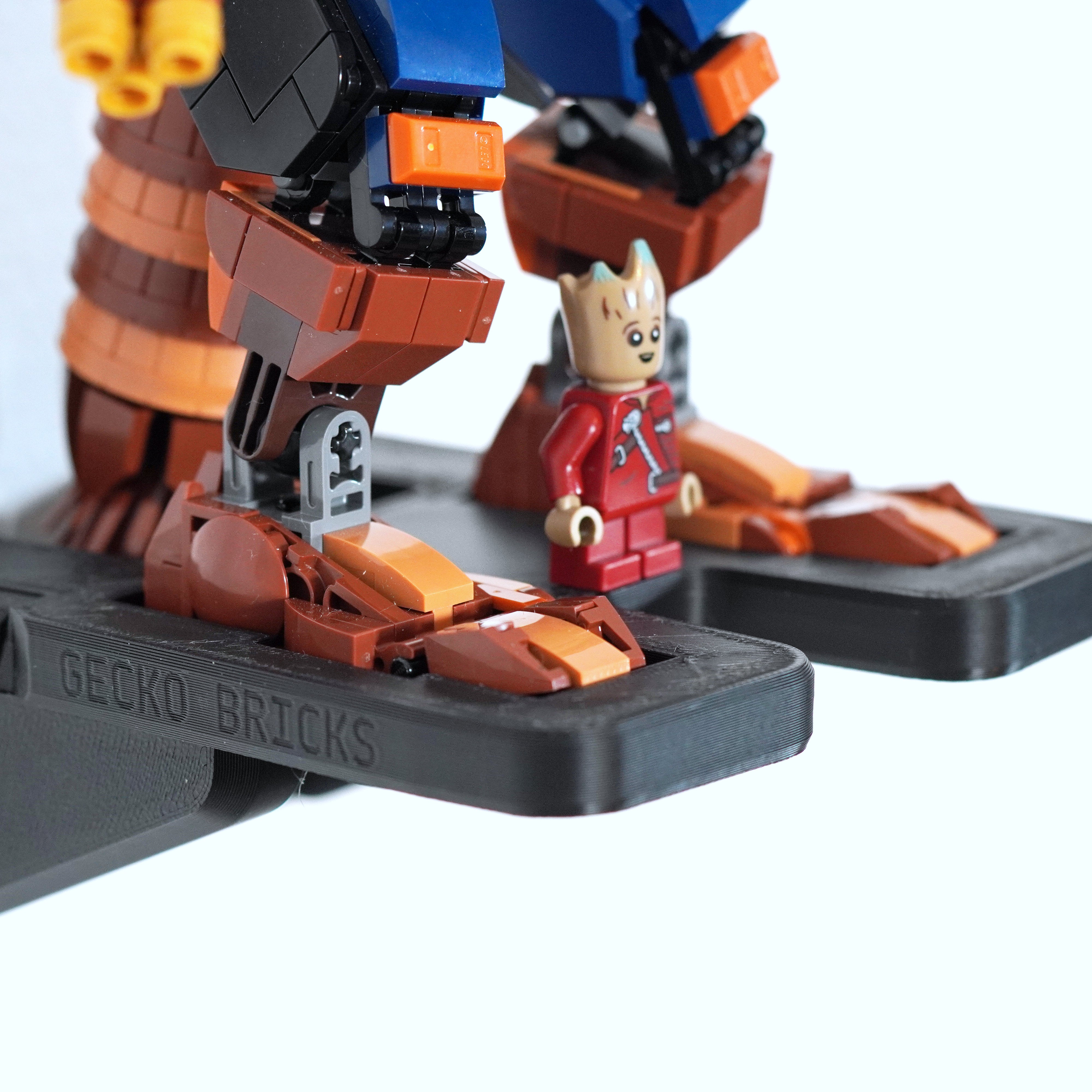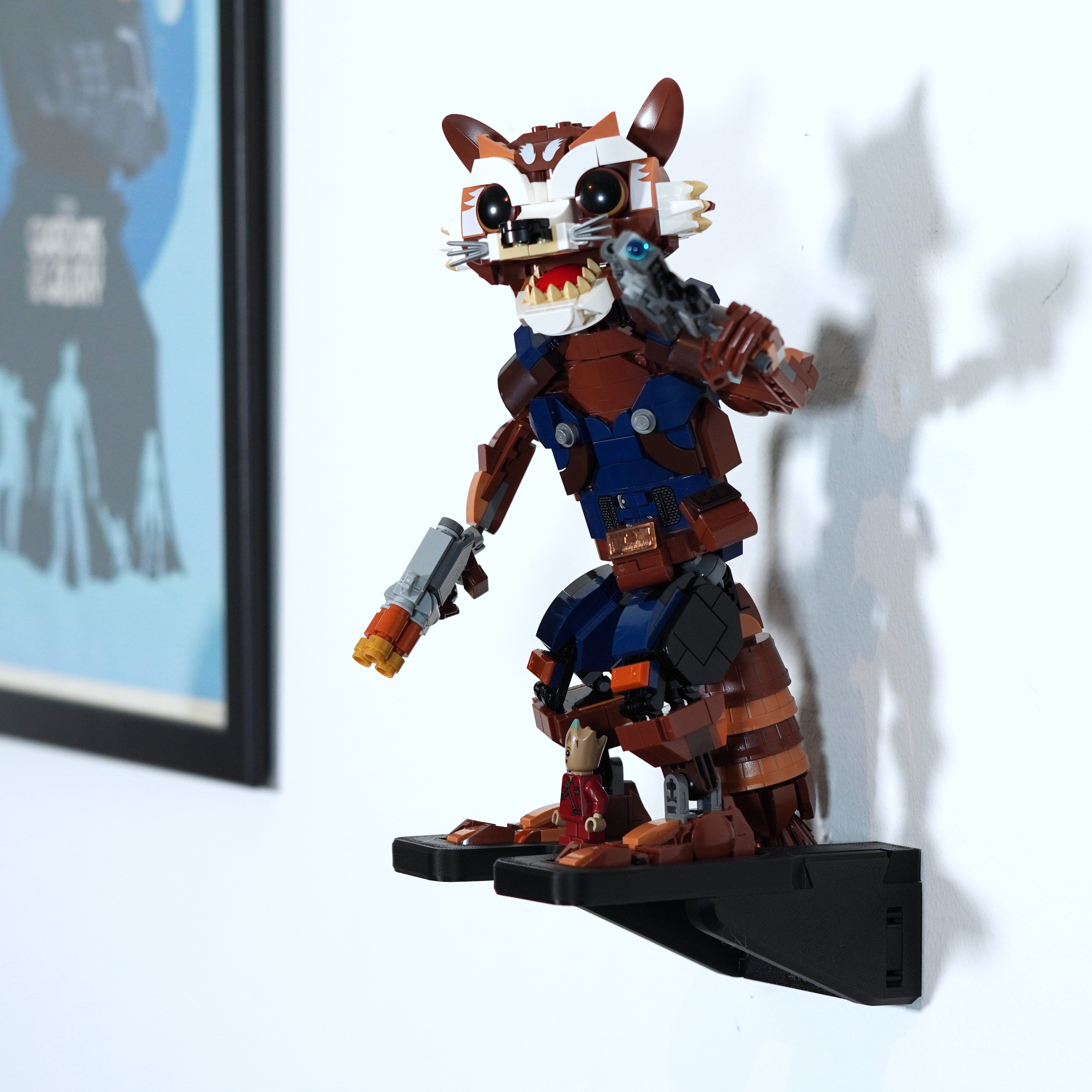 Tämä seinäkiinnike on suunniteltu esittelemään turvallisesti Marvel Rocket ja Baby Groot -setti 76282. Kiinnike asennetaan kahdella ruuvilla ja mahdollistaa mallin helpon irrottamisen tarvittaessa. Lisäksi muotoiluun kuuluu erillinen kiinnityspiste Baby Groot -hahmolle.