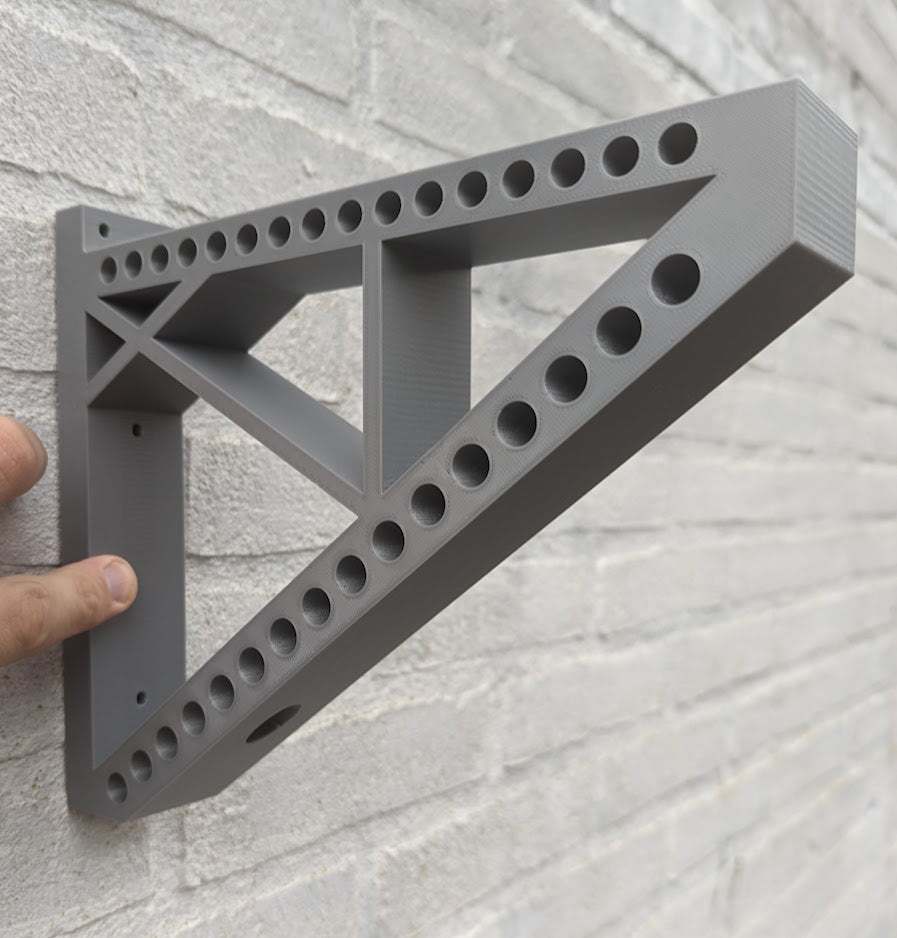 Voit myös lisätä painettuja hyllykannattimia, jotka tukevat hyllyjäsi vakaasti. Tämä seinäkiinnike on ihanteellinen järjestetyn tilan luomiseen mihin tahansa huoneeseen olohuoneesta työpajaan, ja se voi kantaa kaikkea kirjoista ja säilytyslaatikoista suosikki koristeesineisiisi ja koristeisiisi. Monikäyttöinen rakenne lisäreikillä mahdollistaa myös tulevat säädöt, esimerkiksi köysien kiinnittämisen katosta pidempien esineiden, kuten tankojen tai lankkujen, kiinnittämiseksi.