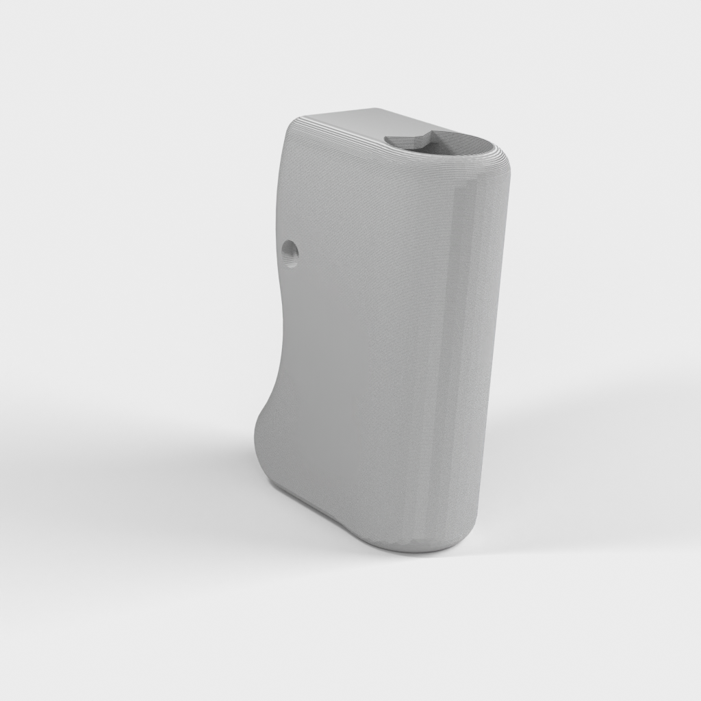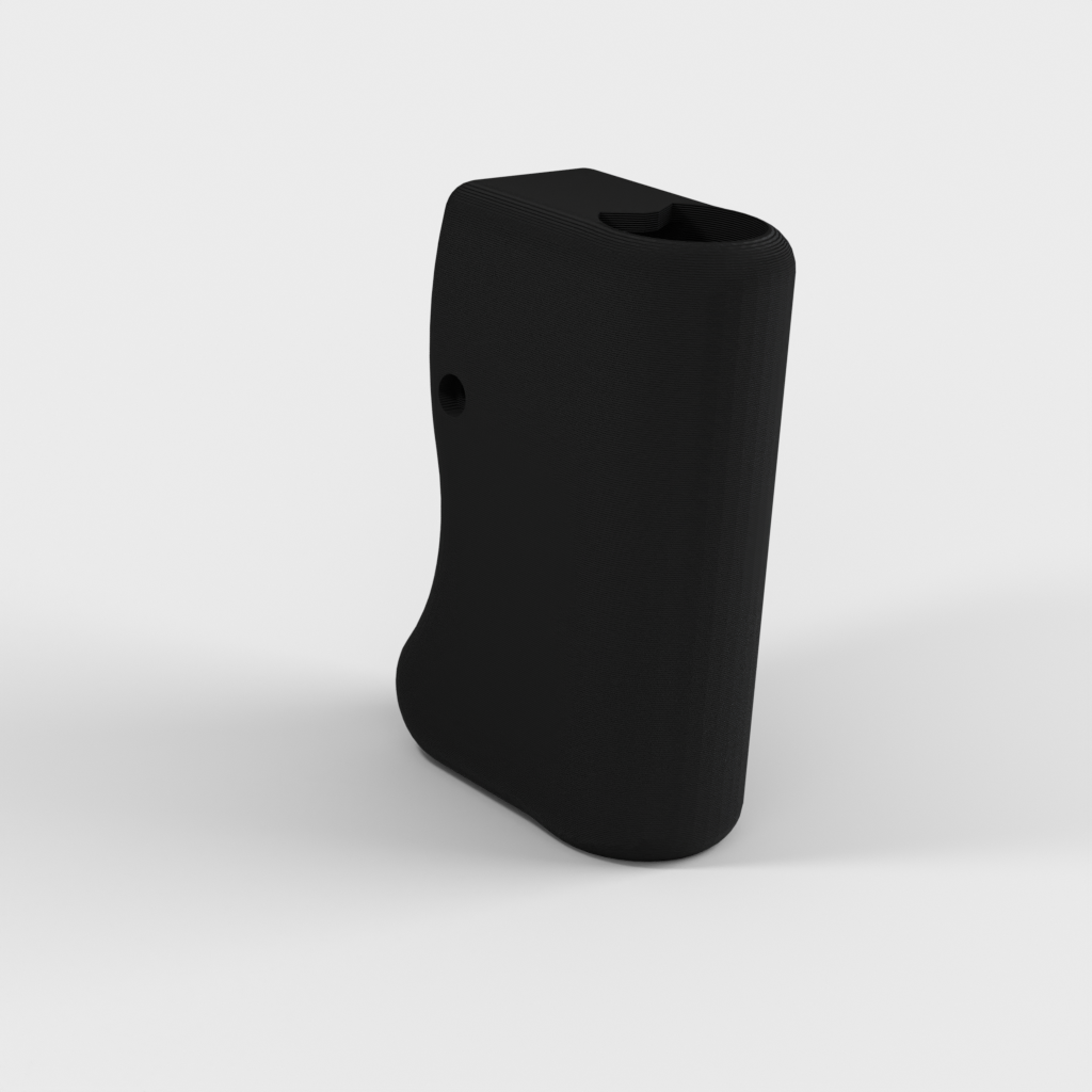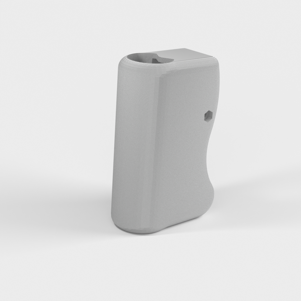 Kahva on suunniteltu käyttämään uudelleen alkuperäistä vartta, ja se vaatii M3x30 mm:n ruuvin akseliksi asennusta varten. Vaihtamalla viallisen kahvan pidennät arvokkaan kitaratelineesi käyttöikää ja vältät uuden täydellisen ratkaisun tarpeen. Käyttäjille, jotka haluavat muokata osaa, mukana on FreeCad-lähdetiedosto.