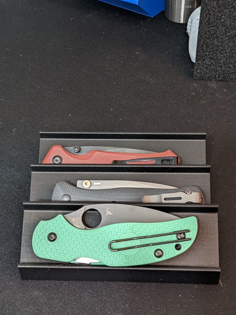 Tämä jalusta on suunniteltu tarjoamaan käytännöllinen ja selkeä ratkaisu veitsien säilytykseen ja esillepanoon. Sen avulla voit pitää useita taskuveitsiä järjestyksessä yhdessä paikassa, mikä vähentää sotkua ja varmistaa, että veitset ovat aina helposti löydettävissä.